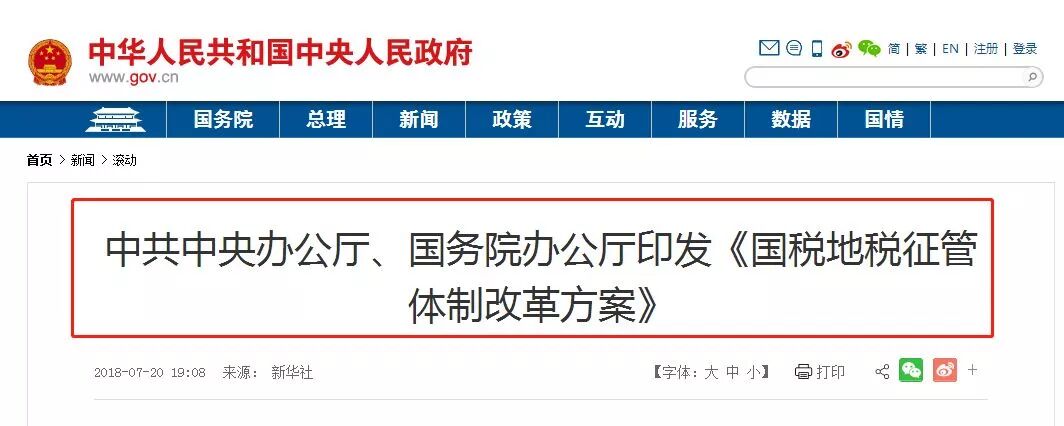 中共中央办公厅、国务院办公厅印发了《国税地税征管体制改革方案》,明确自2019年1月1日起社会保险费由税务部门统一征收,以下是详细内容。